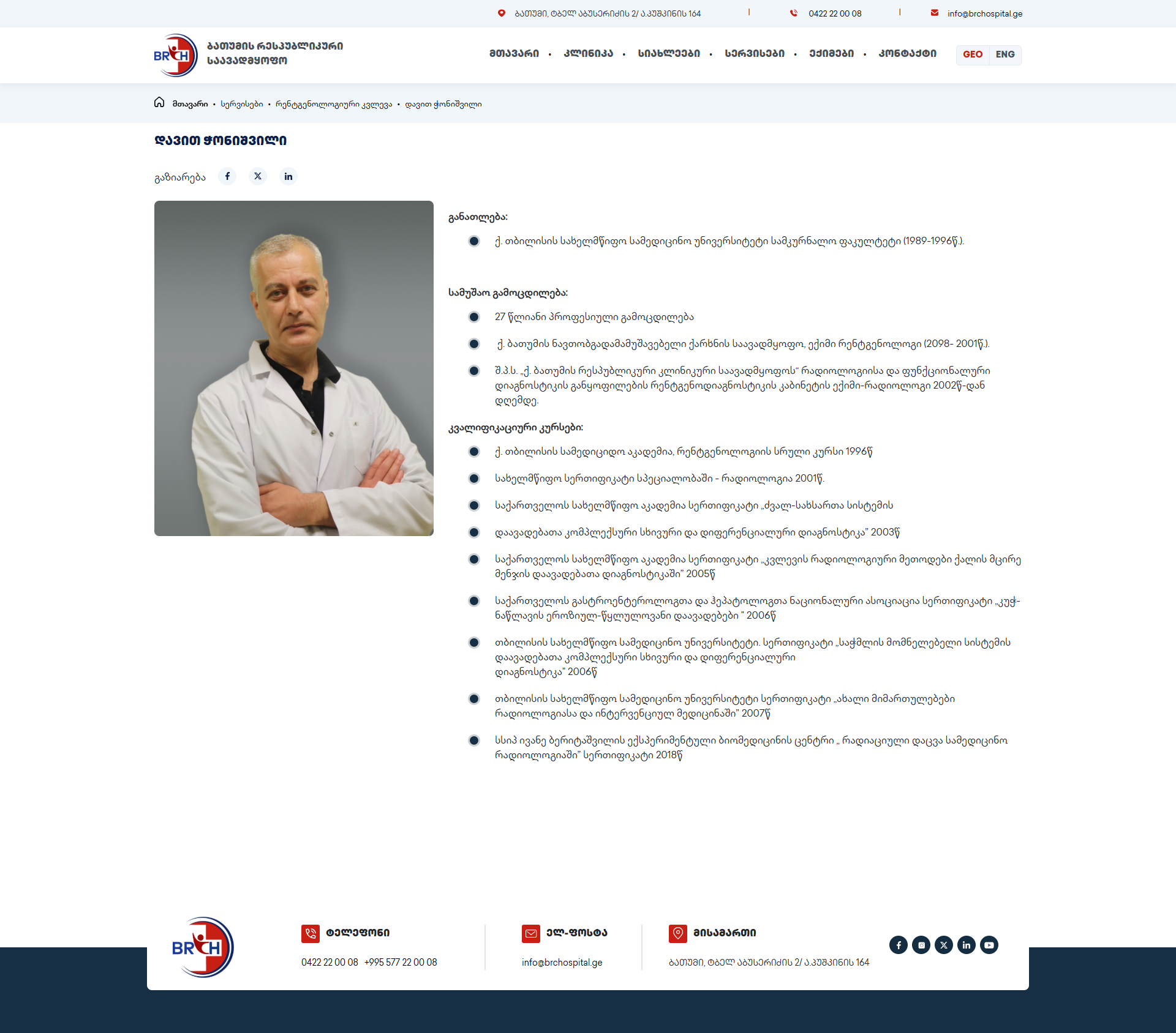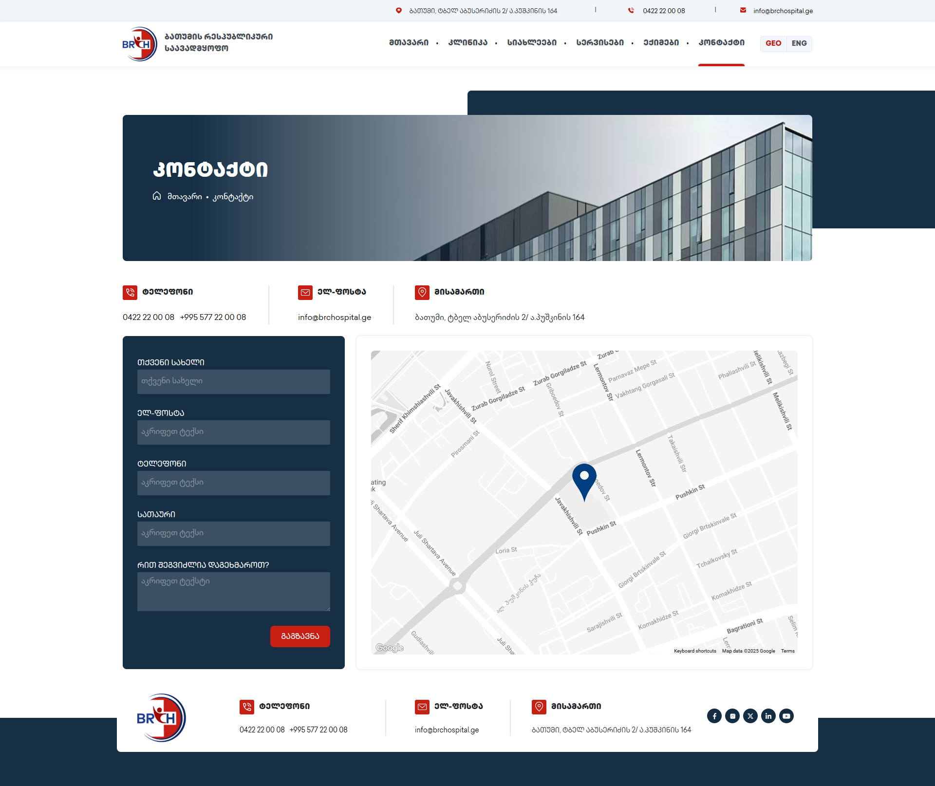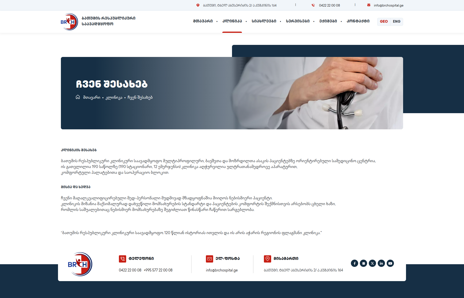 ვებ გვერდი ბათუმის რესპუბლიკური საავადმყოფოსთვის.
